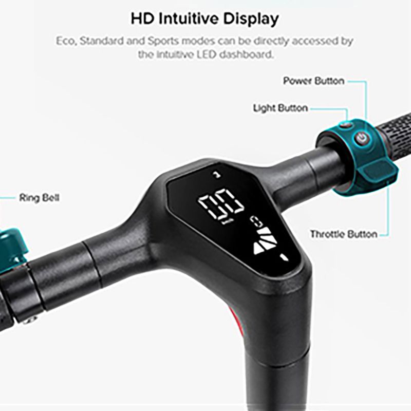 - Plateforme impressionnante: la plateforme de 7,9 pouces permet au conducteur de se tenir debout avec les deux pieds vers l'avant. C'est un grand atout par rapport aux autres trottinettes où vos pieds sont placés l'un derrière l'autre.