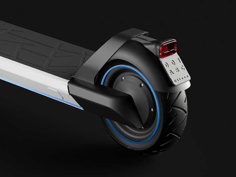 La partie arrière de la trottinette électrique