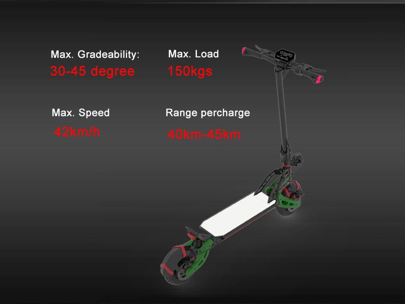 La trottinette électrique G2 plus est dotée d'un moteur sans balai de 800W qui peut réaliser une vitesse maximale de 42km/h et gravir des pentes de 30 à 45 degrés. Elle est assez puissante et fiable pour rouler sur et hors route. Alliant moteur haute vitesse de 800W et pneus tout-terrain de 10 pouces résistants à l'usure, toutes nos trottinettes électriques G2 plus peuvent être utilisées dans des conditions tout-terrain. Vous disposez de trois modes de vitesse à votre convenance.