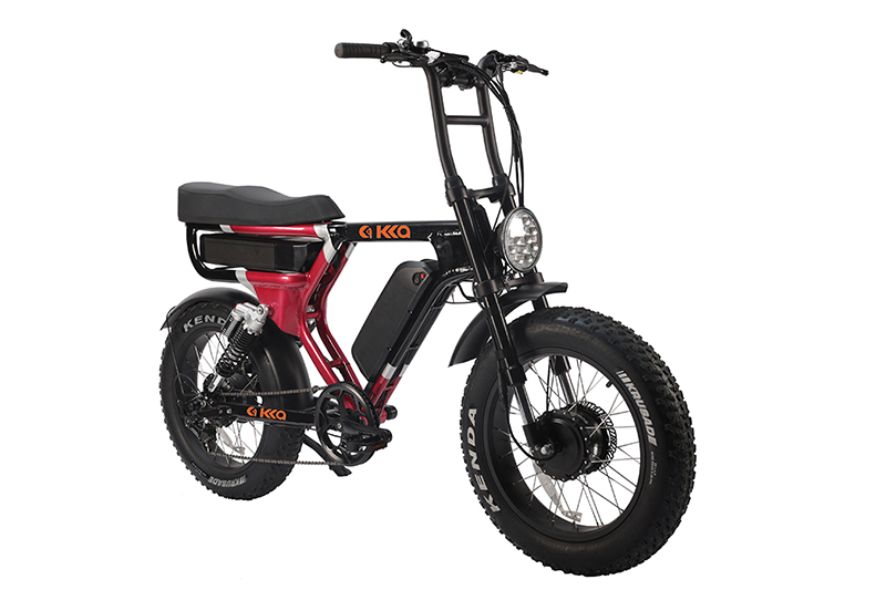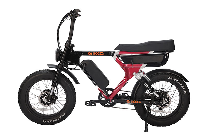 Vélo électrique KKA R2 à Gros pneus 20''*4.0'' Kenda, Vélo électrique urbain avec batterie amovible Samsung ou LG de haute qualité, avec feu de freinage, moyeu sans balais 48V 500W/750W/1000W Bafang monté à l'arrière, double suspension arrière et siège confort extra-long style banane.